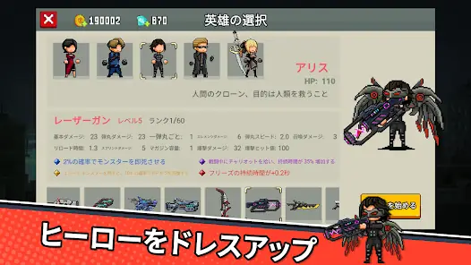 Select your favorite character and various weapons, choose random skills in combat to reflect diverse growth strategies and genres, yet maintain the same extremely smooth controls, hot action scenes, and cool vibes! Survive on a bio-chemical battlefield!